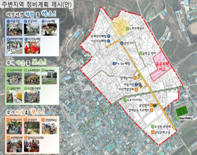 또한 대상지로 선정되는 경우 공공임대주택 건설사업과 함께 대상지 주변의 낙후된 지역의 재활성화를 위한 주변지역 정비계획(이하 마을계획) 수립도 지원받을 수 있다.