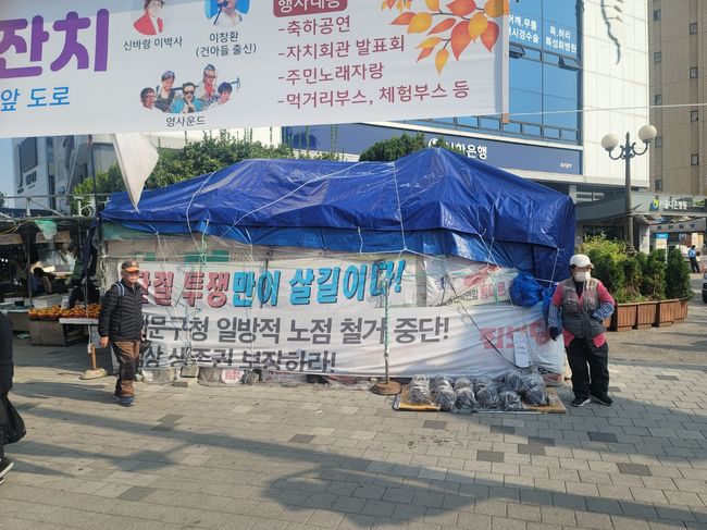해당 자리는 지난해 3월 불법노점 6개가 철거된 후, 이에 대항하여 노점단체가 집회시위를 열고 9개월간 집회 천막을 방치해두었던 곳이다. 도시미관 저해, 인명사고 등을 우려한 구는 노점단체와의 협의 끝에 지난해 12월 천막을 철거했다.