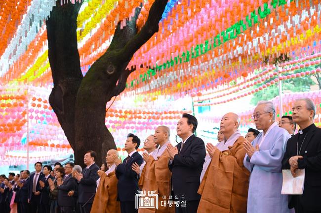 윤 대통령은 축사를 통해 부처님의 가르침을 등불로 삼아 언제나 국민과 함께 해 준 불교계에 깊은 감사를 표하며 불교는 우리 정신문화의 근간이었고 지금도 우리 사회를 건강하게 만드는 중추적 역할을 하고 있다고 말했다.
