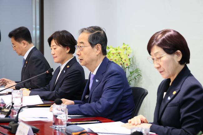 한덕수 국무총리가 지난 16일 인천공항본부세관 특송물류센터에서 열린 국정현안관계장관회의를 주재, 모두발언을 하고 있다.