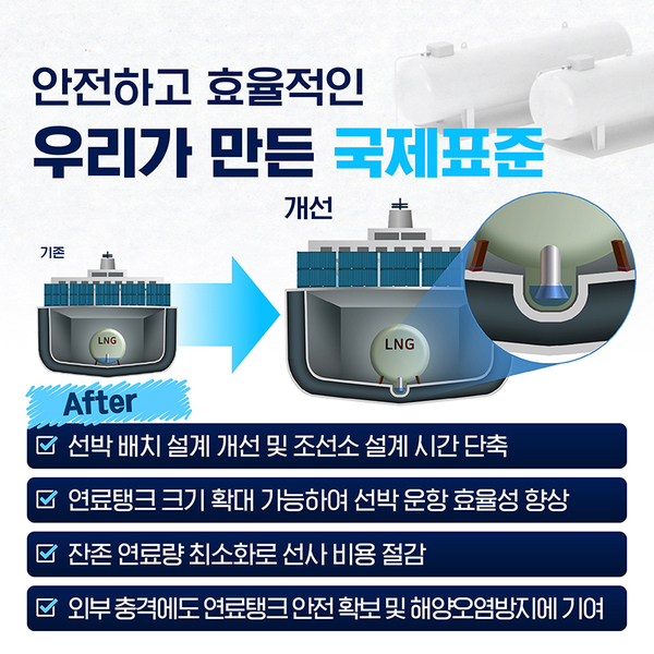 이에 LNG 선박 건조분야에서 기술우위를 점하고 있는 우리나라는 HD현대중공업, 한국선급과 협력을 통해 지난해 9월 LNG 연료탱크의 설계기준을 명확히 하기 위한 국제기준 개정안을 국제해사기구에 제안했다.