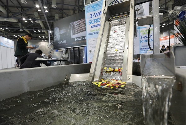 ▲ 경기 고양시 킨텍스에서 열린 2023 국제 물산업 박람회를 찾은 관람객들이 부유물 제거를 위한 제진기를 살펴보고 있다. 2023.3.21.(ⓒ뉴스1) 올해 제5기 혁신형 물기업 지정에는 매출액 및 수출액, 해외인증 실적을 보유한 수출 유망기업 40개 사가 신청했으며, 2개월 동안 서면평가·발표평가·종합평가·물산업기술심사단 심의 등 4단계 심층평가를 거쳐 10개 사를 선정했다.
