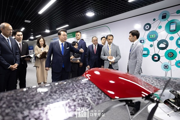 ▲ 윤석열 대통령이 13일 오후(현지시간) 우즈베키스탄 타슈켄트 창업촉진센터(U-Enter)를 방문해 제조와 창작을 위한 장비와 시설이 구비된 ‘매이커스페이스’ 공간을 둘러보고 있다. 창업 촉진 센터(U-Enter)는 지난해 대한민국 정부의 지원으로 우즈베키스탄 타슈켄트에 개소했다.(대통령실 홈페이지)