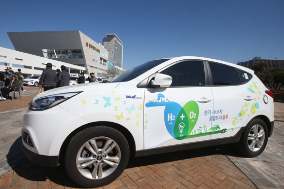 국내 최초 ‘카셰어링’용 수소차. (사진=저작권자(c) 연합뉴스, 무단 전재-재배포 금지)다만 산업부는 “차기 2021년~2025년 평균연비와 온실가스 감축 목표기준 설정과 관련해 아직 정해진 사항은 없다”고 덧붙였다.