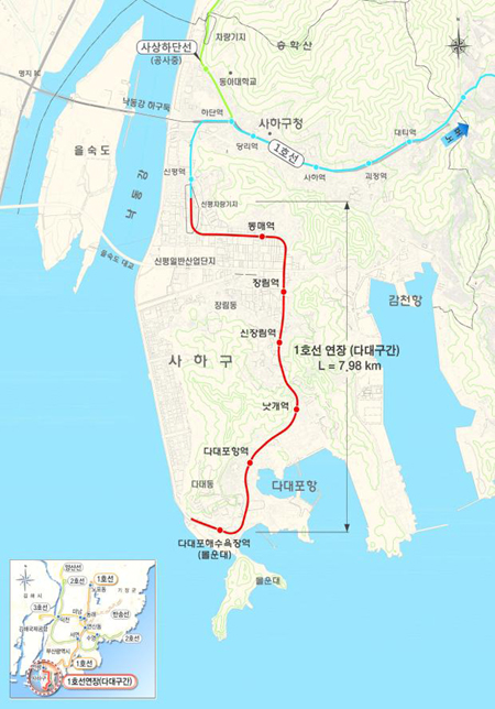 부산도시철도 1호선 연장 다대구간 노선도.<제공=국토교통부> |