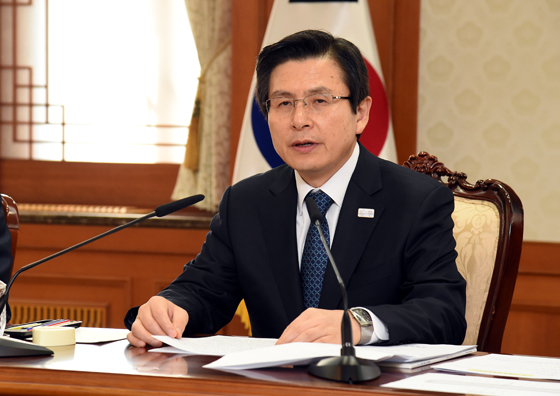 황교안 대통령 권한대행 국무총리가 13일 오후 서울 종로구 정부서울청사 대회의실에서 ‘AI·구제역 관계 장관회의’를 주재하고 있다.또한 “정부는 사후대응 위주인 현재의 방역체계를 철저한 방역수칙 준수, 가축 사육환경 개선 등을 통해 사전대비 중심으로 전환해야 한다”고 당부했다.