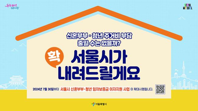 서울시는 ‘신혼부부 임차보증금 이자지원’ 사업을 개선, 혜택을 대폭 확대키로 했다고 밝혔다. 확대 혜택은 시행일인 7.30.(화) 이후 신규 대출 신청자와 기존 대출 연장 신청자부터 적용받을 수 있다.