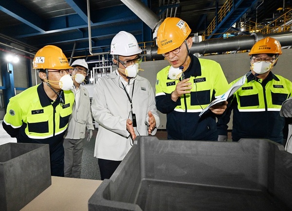 ▲ 최상목 경제부총리 겸 기획재정부 장관이 지난 24일 핵심산업(이차전지) 원재료 자립화를 추진하는 기업 현장으로 세종시 소재 포스코퓨처엠 세종공장을 방문, 생산공정을 둘러보고 있다. (기획재정부 제공) 정부는 글로벌 공급망 환경변화와 주요국 정책 움직임에 대응한 범정부 공급망 안정화 정책의 기본 틀을 제시하고 4대 정책방향과 8대 정책과제별 추진전략·핵심과제를 마련했다.