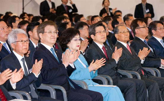 미래창조과학부, 방송통신위원회, 한국과학기술단체총연합회, 한국정보방송통신대연합이 21일 오전 서울 중구 동대문디자인플라자에서 ‘2017년 과학정보통신의 날 기념식’을 개최했다. 황교안 대통령 권한대행 국무총리 등 참석자들이 기념 영상을 보며 박수치고 있다.(사진=미래창조과학부)
