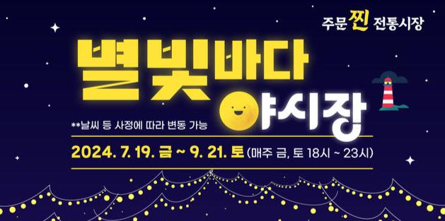 이번 야시장의 주제는 “주문찐 전통시장, 별빛바다 야시장”으로 주문진전통시장과 함께하는 ‘아주 좋은, 최고의 야시장’이라는 의미를 담았다.