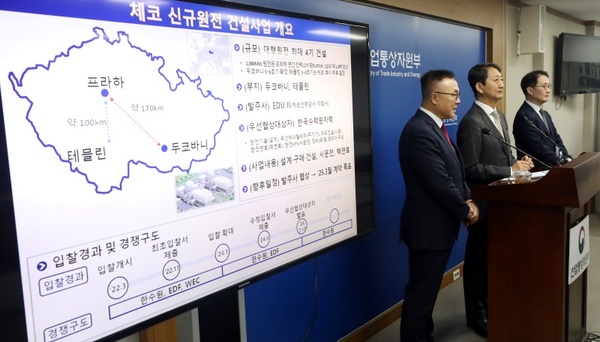 산업통상자원부는 체코 정부가 지난 17일 신규원전 건설사업 우선협상대상자로 한국수력원자력(한수원)을 선정했다고 18일 밝혔다.