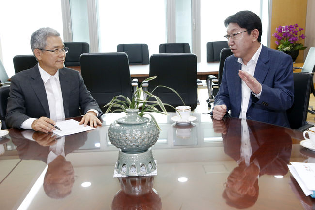 우범기 전주시장은 22일 전남 나주시에 위치한 한국전력공사 본사를 방문해 김동철 한국전력공사 사장과 기후 변화와 에너지 패러다임의 전환에 대응하기 위해 탄소 중립 및 에너지 신산업 분야에 대해 시가 나아갈 방향과 역할 등에 대해 논의했다.