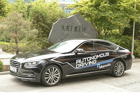 국내 최초로 자체 개발한 국산 감지기를 장착한 자율주행자동차인 만도 자율주행차 모습. <제공=국토교통부> |