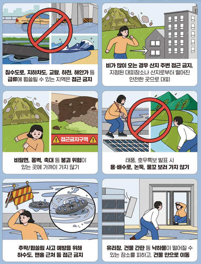 호우 대비 산사태 우려지역과 지하차도, 반지하주택 등 취약지역·시설에 대해 예찰을 강화하고, 위험 우려 시 선제적인 통제와 주민대피 조치를 실시한다.