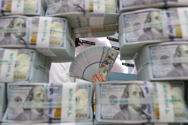 ▲ KEB하나은행 명동점에서 은행 관계자가 달러화를 정리하고 있다.(ⓒ뉴스1,) 21일 기획재정부에 따르면, 만기별로 단기외채(만기 1년 이하)는 1420억 달러로 전 분기 말 대비 9억 달러 증가했다. 반면 만기 1년 초과 장기외채는 5163억 달러로 지난해 말 대비 101억 달러 감소했다.