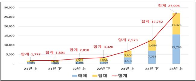 • 중개거래 전자계약 건수 ’24년 상반기 기준 전년 동기간 대비 4배 증가