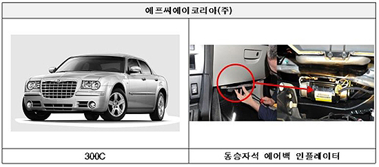 한국토요타자동차에서 수입·판매한 토요타와 렉서스 모델 7차종 2만 2925대와 에프씨에이코리아에서 수입·판매한 닷지와 크라이슬러 모델 3차종 8417대, 재규어랜드로버코리에서 수입·판매한 2차종 3346대를 에어백 결함 때문에 리콜한다고 밝혔다.