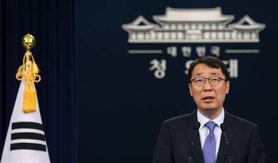브리핑하는 윤영찬 국민소통수석. <사진=청와대> |