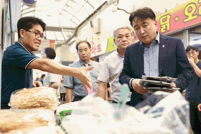 이날 김영환 지사는 사창시장 곳곳을 돌면서 온누리상품권으로 농산물, 과일, 반찬 등을 구매하며 장기적인 경기침체와 물가상승으로 어려움을 겪고 있는 상인들을 격려했고, 서민 생활 안정을 위한 추석 명절 물가를 점검하기도 했다.