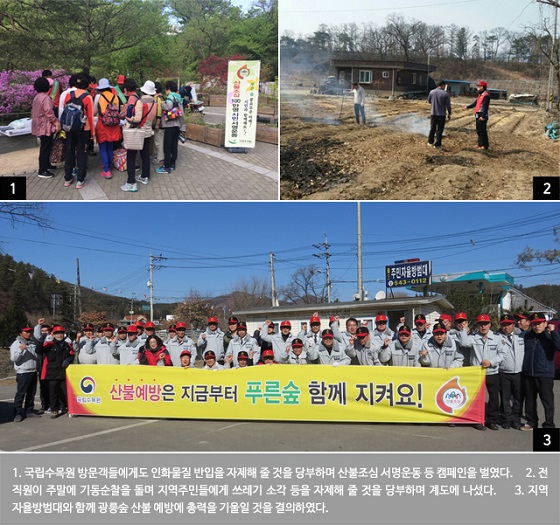 국립수목원은 매년 산불진화 훈련을 하고 수목원 관람객을 대상으로 인화물질 소지 단속, 산불예방 캠페인 등을 수시로 진행했다. 또 광릉숲 인근 주민의 쓰레기·텃밭 소각 자제와 인근 지자체의 협조를 당부하는 등 맞춤형 산불 예방활동을 펼쳤다.