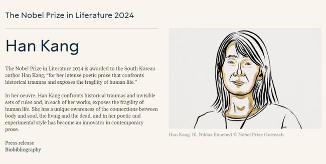 스웨덴 한림원은 10일(현지시간) 올해 노벨 문학상 수상자로 한강을 선정했다고 발표했다.