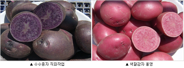 농촌진흥청이 품종 개발한 색깔감자 '자영'과 '홍영'은 샐러드, 찜, 냉채, 초절임, 생즙 등 다양한 요리로 활용이 가능하다.