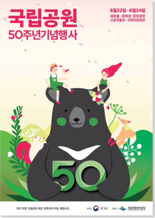 박천규 환경부 자연보전국장은 국립공원 50주년 기념행사가 국민에게 희망의 기운을 북돋는 계기가 될 것”이라며 “가족과 함께 광화문광장으로 나와 국립공원의 50번째 생일을 함께 축하해 달라 고 밝혔다.