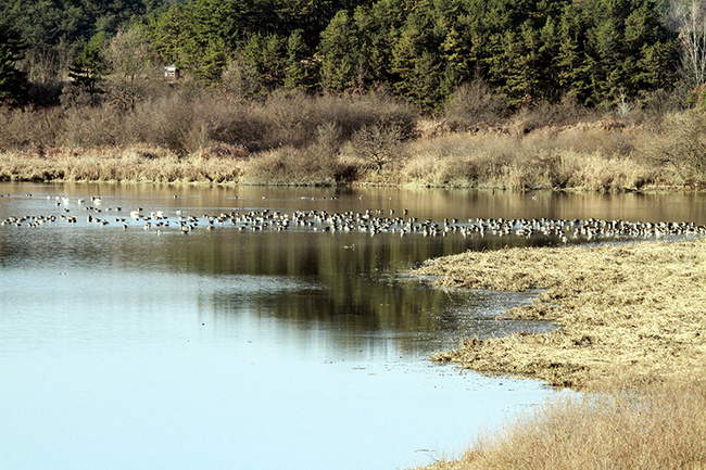 ▲ 우포늪에 큰 기러기 무리들이 서식하고 있다. (ⓒ뉴스1,)그동안 내륙습지는 혐기성 미생물(메탄 생성균 등)을 통해 메탄, 이산화탄소와 같은 온실가스를 방출하는 탄소배출원으로 알려져 왔다.