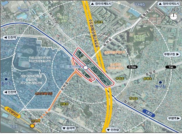 인천시는 동인천역 일대를 복합지구로 개발할 계획이다. 이 지역은 주거, 업무, 상업 기능을 결합한 복합지구로 재탄생해 원도심의 새로운 거점으로 자리 잡을 전망이다. 특히 2026년 중·동구 통합에 맞춰, 그동안 경인전철로 인해 단절됐던 남·북 광장을 연결하고 상부에 입체광장을 조성할 예정이다.