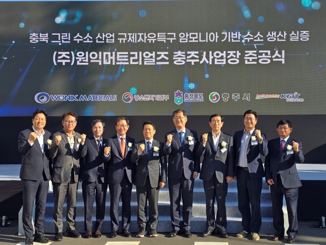 중소벤처기업부와 충북도, 충주시는 24일 충주 대소원면 영평리(메가폴리스 산단)에서 개최한 충북 그린수소산업 규제자유특구 암모니아 기반 수소 생산·활용 실증사업장 준공식에서 실증사업을 확인하고 발전 방향을 논의했다고 밝혔다.