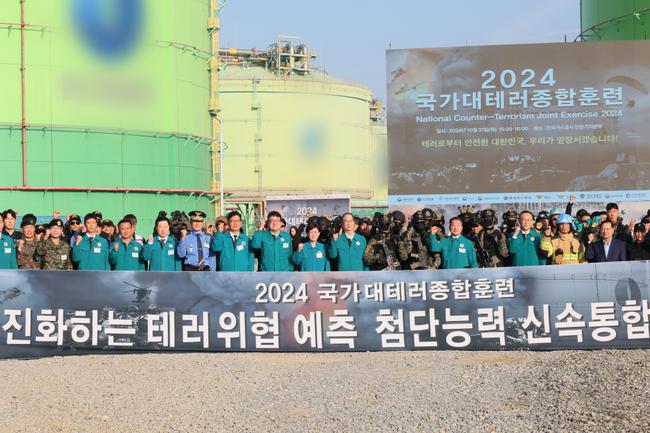[일간환경연합 장민주 기자] 정부가 10월 31일 인천 한국가스공사 인천기지본부에서 한덕수 국무총리 주관으로 ‘2024 국가대테러종합훈련’을 실시하며, 드론과 화생방 등 신종 테러수단에 대응하는 국가적 대비태세를 점검했다.