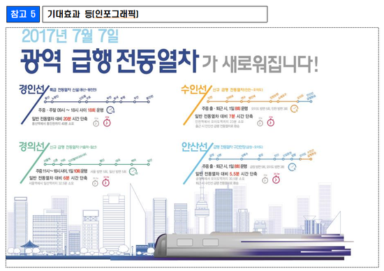 먼저, 안산선 등 4개 노선은 비용투자없이 차량운행계획 조정을 통하여 급행열차를 확대운행하는데 이어서 경부선, 분당선, 과천선, 일산선도 대피선 설치 등 시설개량을 통하여 급행열차를 확대한다. 또한 서울 도심과 수도권 외곽지역을 연결하는 ‘고속 광역급행철도망(GTX)’를 2025년까지 구축하는 것을 주요 내용으로 하고 있다.