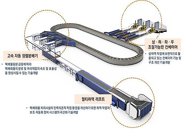 장기간 집중력이 필요한 상품 분류작업은 고속 분배기술을 개발해 작업의 편의성을 높일 계획이다. 다품종 화물을 대형 분류기에 투입하기 위해 수작업으로 진행되던 배송 물품 간 간격조정, 정렬, 진행방향 결정 작업이 모두 자동화돼어 분류인력의 근무피로도가 감소할 것으로 전망된다.