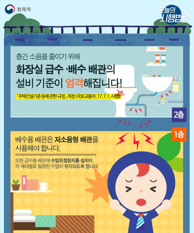 이제, 층간 소음을 줄이기 위해 화장실 급수·배수용 배관 설비 기준이 지금보다 엄격해집니다!