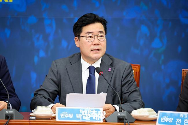 국민의힘이 특검법 처리에 반대하는 것에 대해 박 원내대표는 “김건희 여사를 평범한 국민과 같이 수사받게 하라는 것이 국민의 요구”라며 “무조건적인 반대는 국민 분노만 키운다”고 비판했다.
