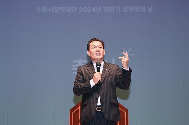 이재준 수원시장은 "장학증서라는 이름으로 받는 우리 공동체의 사랑과 관심을 더 크게 돌려줄 수 있는 훌륭한 사람으로 성장하길 바란다"며 "수원시도 더 나은 공동체를 만들고, 그 안에서 여러분이 멋지게 성장하도록 노력하겠다"고 말했다.