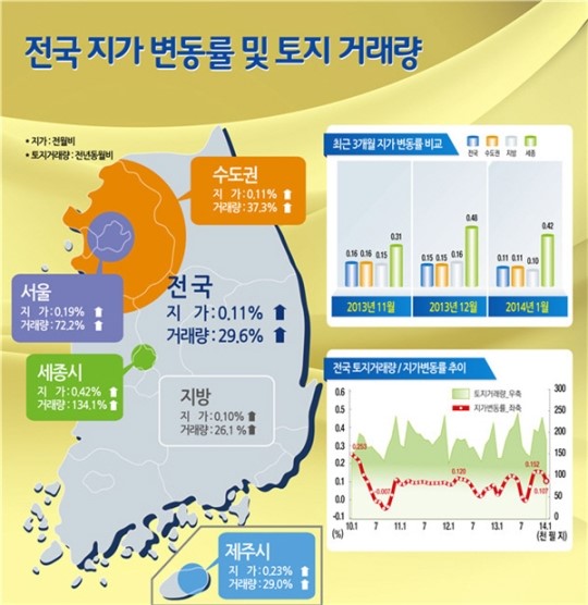 - 서울 면적의 1.8배 거래…세종>부산>제주 순으로 지가 상승률 높아