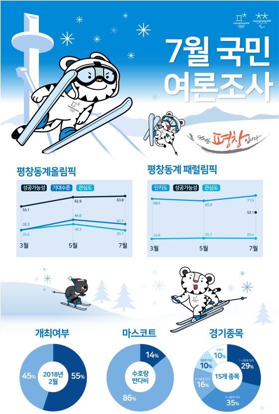 또한 평창 동계올림픽이 기다려지는지에 대해서도 41.1%(1차 조사 35.3%, 2차 조사 44.0%)만이 긍정적으로 응답해 아직까지도 동계올림픽에 대한 국민적 관심이 매우 낮은 것으로 나타났다.