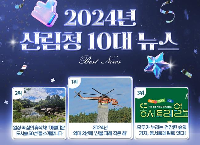 산림청은 2024년의 주요 성과를 돌아보는 10대 뉴스를 발표하며, `역대 두 번째로 산불 피해가 적은 해`를 1위로 선정했다.