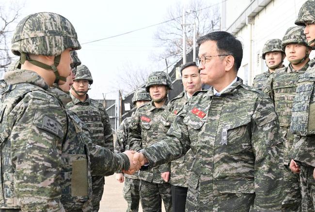 최상목 대통령 권한대행 부총리 겸 기획재정부 장관이 2025년 1월 1일 서부 최전방 전선인 해병대 2사단을 방문, 장병들과 악수하며 격려를 하고 있다.2025년 새해 첫날, 최상목 대통령 권한대행 부총리 겸 기획재정부 장관은 경기 김포에 위치한 해병대 제2사단 ‘돌곶이초소’를 방문해 추운 날씨 속에서도 경계작전을 수행 중인 장병들을 격려했다. 이번 방문에는 김선호 국방장관 직무대행, 주일석 해병대사령관, 최영길 해병2사단장 등이 함께했다.