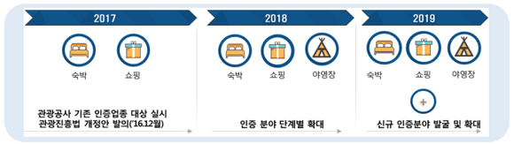 문체부와 관광공사는 올해 숙박·쇼핑 분야로 시작해 법적 기반 마련과 아울러 연차적으로 인증 대상과 범위를 확대해 나갈 예정이다.