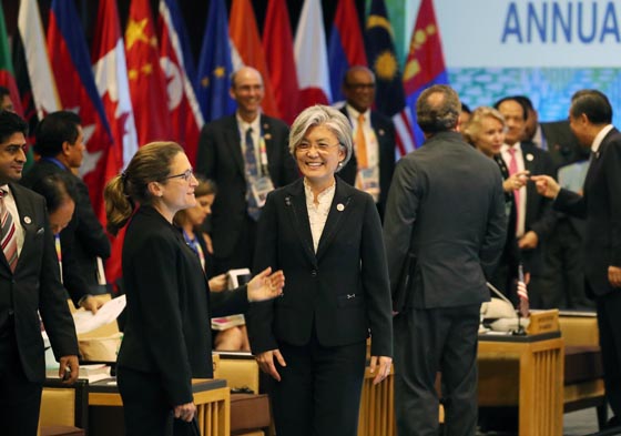 [일간환경연합 장영기 기자]강경화 외교장관은 7일(현지시간) 필리핀 마닐라에서 개최된 제24차 아세안지역안보포럼(ARF) 외교장관회의에 참석해 한반도 문제를 포함, 지역 및 국제 정세에 대한 의견을 교환했다.