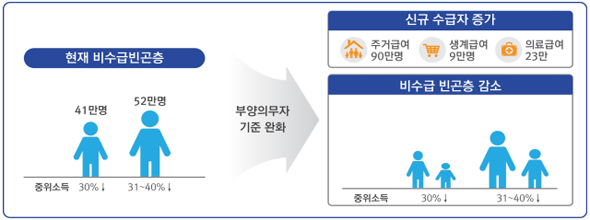 이에 앞서 올 11월부터는 수급자와 부양의무자 가구에 노인 또는 중증 장애인이 포함된 경우 부양의무자 기준을 적용하지 않기로 했다.