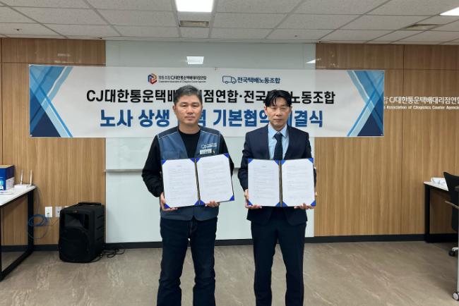 [일간환경연합 김경훈 기자] 전국택배노동조합(이하 택배노조)이 CJ대한통운 대리점연합회와 14일 기본협약을 체결했다. 지난 9월 교섭을 시작한 이후 4개월 넘게 이어진 협상 끝에 양측은 주7일 서비스 도입과 함께 택배노동자들의 주5일제 확대, 근무 여건 개선 등에 합의했다.