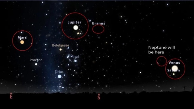 이번 행성 정렬은 태양보다 앞서 지는 수성과 지구를 제외한 태양계 행성들인 금성, 화성, 목성, 토성, 천왕성, 해왕성이 동시에 밤하늘에 떠 있는 현상이다.