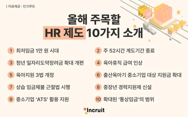 인크루트(대표 서미영)는 29일, 2025년 달라지는 주요 HR(인적자원) 제도 10가지를 발표했다.