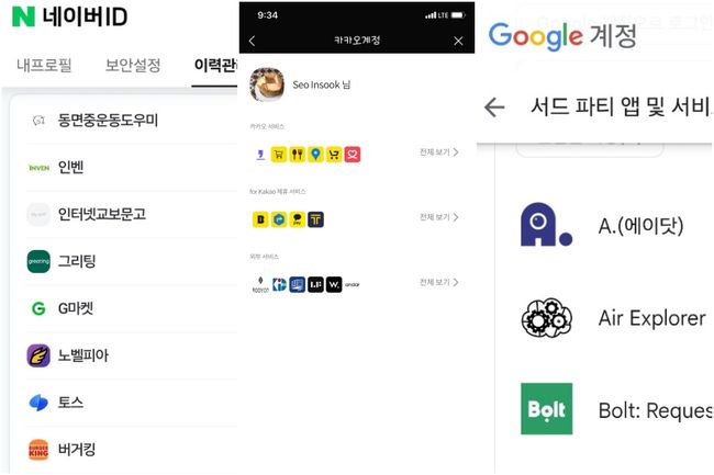 소셜로그인 서비스별 이용사이트 연동해지 예시화면(앱)