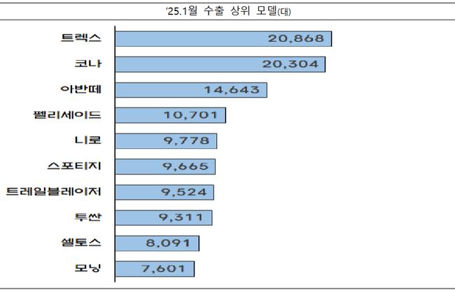 [일간환경연합 한선미 기자] 산업통상자원부는 2025년 1월 자동차 수출액이 49.9억 달러를 기록하며 1월 기준 역대 두 번째로 높은 실적을 달성했다고 18일 밝혔다. 특히 하이브리드차(HEV) 수출량은 3.6만 대로 전년 동월 대비 35.5% 증가하며 최고 실적을 경신했다.