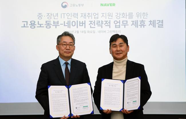 [일간환경연합 김경훈 기자] 네이버㈜와 고용노동부가 중장년 IT 인력의 재취업 지원을 위한 협력에 나선다. 양측은 18일 경기도 성남시에 위치한 네이버 본사에서 맞춤형 재취업 프로그램 운영을 위한 업무협약을 체결했다.