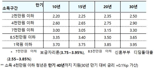 이번 금리 조정은 유예 기간을 거쳐 3월 24일부터 적용될 예정이다. 한편, 정부는 청년들의 주택 마련 부담을 덜기 위해 ‘청년 주택드림 청약 통장’을 1년 이상, 1천만 원 이상 납입한 청년이 신규 분양을 받을 경우 지원하는 ‘청년 주택드림 대출’을 3월 말 출시할 계획이다.